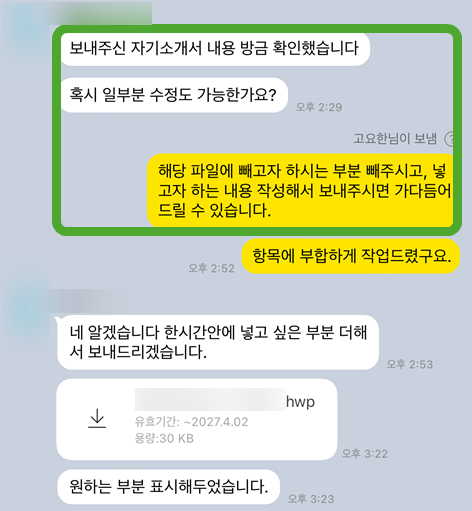 대기업 자소서 문항, 합격 자기소개서 첨삭 대필 안녕하세요! 대기업 자소서 첨삭 전문가입니다. 솔직히 말씀드리면, 매년 2000명 넘는 분들의 자소서를 컨설팅하면서 정말 다양한 케이스를 접하게 됩니다. 특히 대기업 자소서는 기업의 인재상과 직무 적합성을 얼마나 잘 연결하느냐가 관건이죠. 이번에는 제가 대기업 지원자분의 자소서 첨삭 과정을 통해 어떻게 합격으로 이끌었는지 생생하게 들려드릴게요. 수백 건의 합격 사례를 바탕으로, 여러분의 …